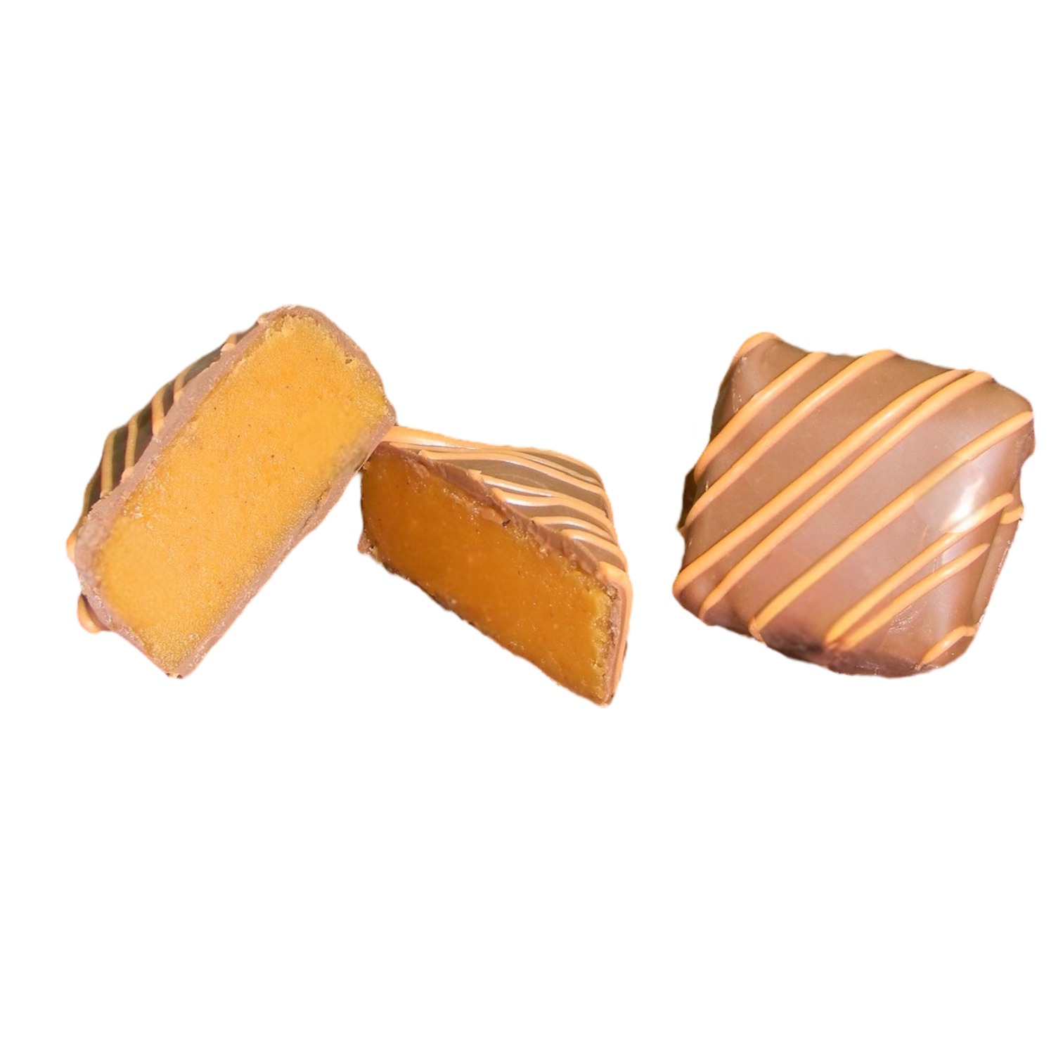 These delightful treats combine a creamy pumpkin pie fudge center covered with rich milk chocolate.