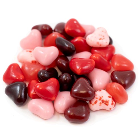 Heart-shaped Gourmet Cherry Jellybeans, made with REAL cherry juice.