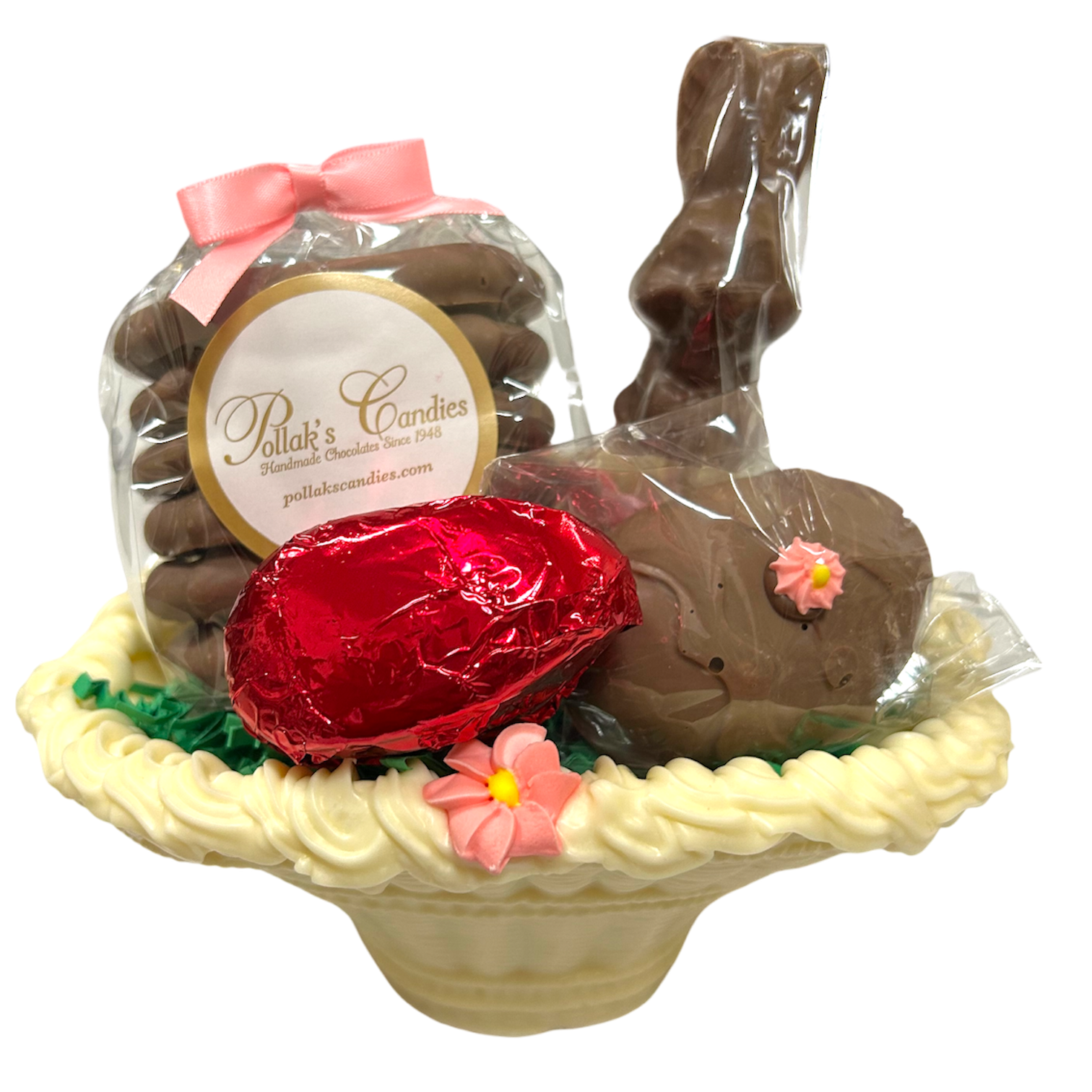 Pollak’s hand decorated White Chocolate Basket filled wIth Easter treats.